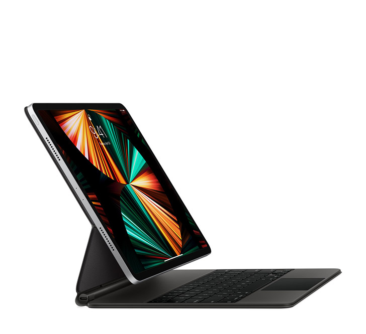 The Magic Keyboard has a floating cantilever design, allowing you to attach iPad Pro magnetically and to smoothly adjust it to the perfect viewing angle for you.