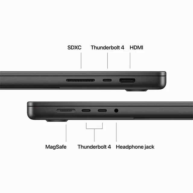 - Features MagSafe 3 ports, HDMI port and SDXC card slot for connecting to displays and camera memory cards